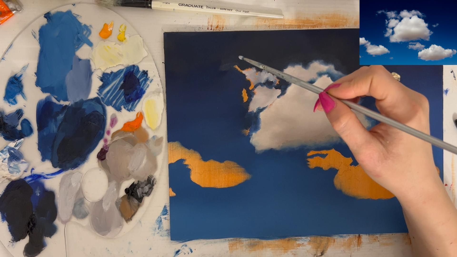 In this mini course, you’ll paint a realistic cloud study from start to finish, learning how to build form, control values, and create softness without losing structure. The lessons guide you through each stage of the painting, from early layers to final refinements.